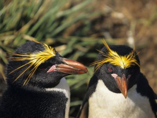 Macaroni penguins are the most abundant penguin species with the breeding pairs of no less than 11 million. These flightless birds typically breed in South Georgia, South Orkney Islands, Falklands, Prince Edward, Marion Islands, Shetland Islands, Crozet Islands, Bouvet Islands, Kerguelen Islands and Heard Islands. They are also found in Brazil, Tristan da Cunha, New Zealand, Australia, and South Africa.