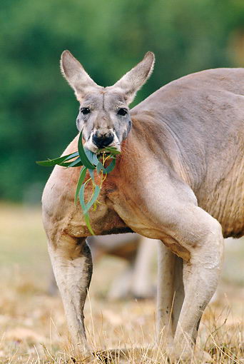 - If the conditions are ideal then red kangaroos and eastern grey kangaroos rely on annual forbs and grasses whereas the western grey species feeds on grass, forbs, chenopod shrubs, mulga, and saltbush. The feeding behavior changes during dry conditions as they search for grasses and they do not eat saltbush and shrubs. Red kangaroos in particular are even starved to death in severe drought.